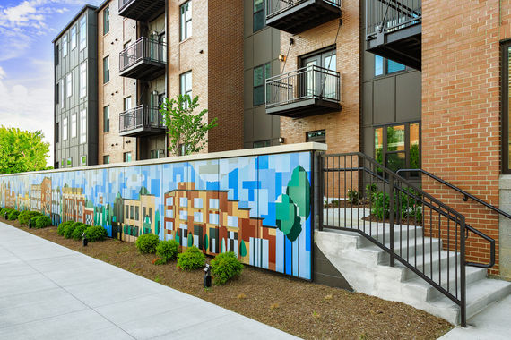The building is comprised of 100 apartment units and has a mix of one-, two-, and three-bedrooms. 50 of the apartments are HUD subsizided/affordable units, 25 are workforce units, and the remaining 25 are market-rate aprtments.
